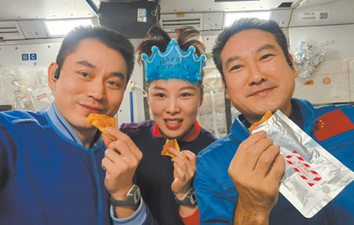 執(zhí)行迄今時(shí)間最長一次太空飛行,神舟十三號航天員趕上了第一次在太空跨年,第一次在空間站過春節(jié)。在地面團(tuán)隊(duì)的精心保障下,航天員們除夕夜為人們送上來自太空的新年祝福,在空間站度過了年味十足、充實(shí)精彩的虎年春節(jié)。從太空出艙、“天宮課堂”開講,到手控遙操作完成貨運(yùn)飛船與空間站組合體交會對接試驗(yàn),從中國女航天員首次太空漫步,到3名航天員太空飛行累計(jì)超100天,太空“出差”期間,航天員們開展了一系列空間科學(xué)實(shí)驗(yàn)和技術(shù)試驗(yàn),刷新了一個(gè)又一個(gè)中國航天紀(jì)錄,為中國空間站正式建成打下堅(jiān)實(shí)基礎(chǔ)。