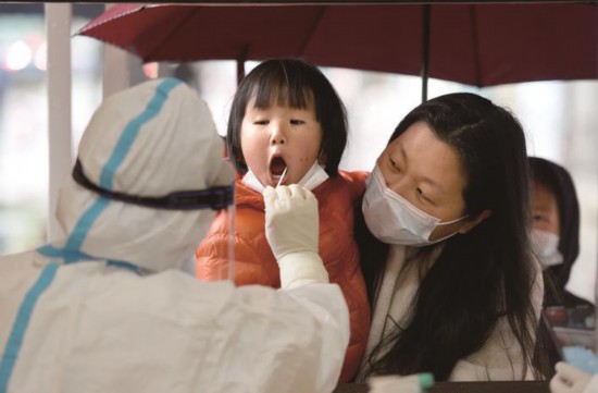 3月20日,在嘉興秀洲區(qū)新城街道核酸采樣點(diǎn),市民們冒雨前來參加核酸檢測?,F(xiàn)場,有不少小朋友跟著家長參加檢測,面對和藹可親的醫(yī)護(hù)人員,小朋友們積極配合,一個(gè)個(gè)表現(xiàn)得特別勇敢。(馮玉坤)