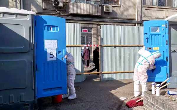 剛封閉不久,北新橋街道后永康胡同東口便增加了2座臨時(shí)單坑的移動(dòng)公廁,為后永康胡同1號(hào)院、11號(hào)院隔離居民和防疫人員提供服務(wù);民旺社區(qū)周邊胡同連夜搭建了12座單坑臨時(shí)移動(dòng)公廁,在民旺南胡同為底商設(shè)置2座單坑臨時(shí)移動(dòng)公廁;在北新橋育樹胡同周邊,11座移動(dòng)公廁也安裝完成。