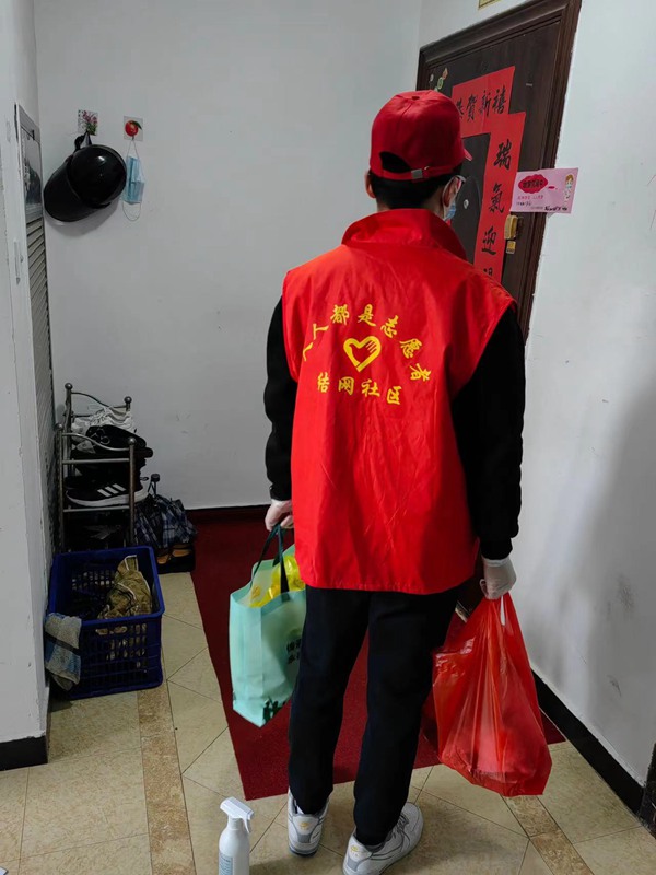 “我們有一個微信群,居家隔離人員如果有采購需求,可以列好清單發(fā)給群里的社區(qū)工作人員,第二天一早就有服務(wù)隊成員為其采購物品并送到家門口?!焙闈硎?,如果居家隔離人員有快遞要拿,他們也會幫著跑腿取件。“隔離病毒不隔離愛,希望通過我們的工作能為居民們帶去更多溫暖?!焙闈f。