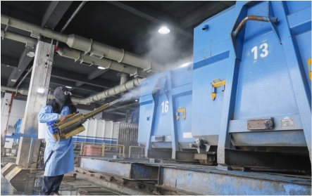 東臺環(huán)衛(wèi)處對垃圾中轉站、環(huán)衛(wèi)車輛、果皮箱、公共廁所等進行消殺大掃除,筑牢公共環(huán)境安全屏障。東臺市委宣傳部供圖