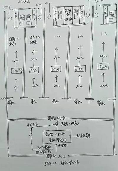 正如祁媛媛所說,靈感來源于實(shí)踐??恐B日來在檢測(cè)一線工作的體驗(yàn),祁媛媛不斷摸索,反復(fù)思考,根據(jù)1-6個(gè)工位的不同組合,手繪了6張檢測(cè)流程圖,上面清晰地標(biāo)注著檢測(cè)的動(dòng)線、每個(gè)環(huán)節(jié)以及對(duì)應(yīng)的功能和注意事項(xiàng),從而能夠直觀地指導(dǎo)居村提升檢測(cè)效率,讓檢測(cè)如“流水線”般高效順暢。