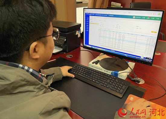 工作人員通過河北省建筑工人實名制和分賬制管理公共服務平臺監(jiān)測某項目農民工考勤記錄。 人民網 林福盛攝