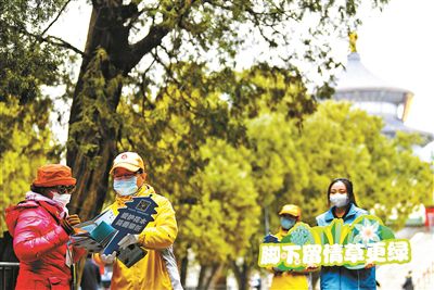 “又是一年春來到,天壇公園即將迎來百花競相開放、處處鳥語花香的生機(jī)時節(jié)。我們增強(qiáng)巡視力度頻次,著統(tǒng)一工服、佩戴紅袖標(biāo),根據(jù)花期精準(zhǔn)管理。對未規(guī)范佩戴口罩、扎堆聚集的游客耐心勸導(dǎo),及時勸阻壇墻刻畫、采挖野菜、采摘果實(shí)、攀折花木、踐踏草地等不文明行為……”3月25日,天壇公園在祈年殿景區(qū)西側(cè)舉辦“愛護(hù)天壇 文明有我”文明游園啟動儀式,天壇公園工作人員向廣大游客市民發(fā)出文明游園倡議。