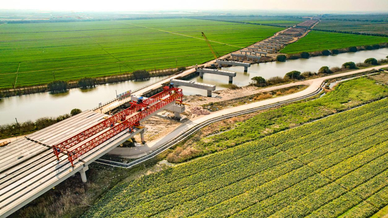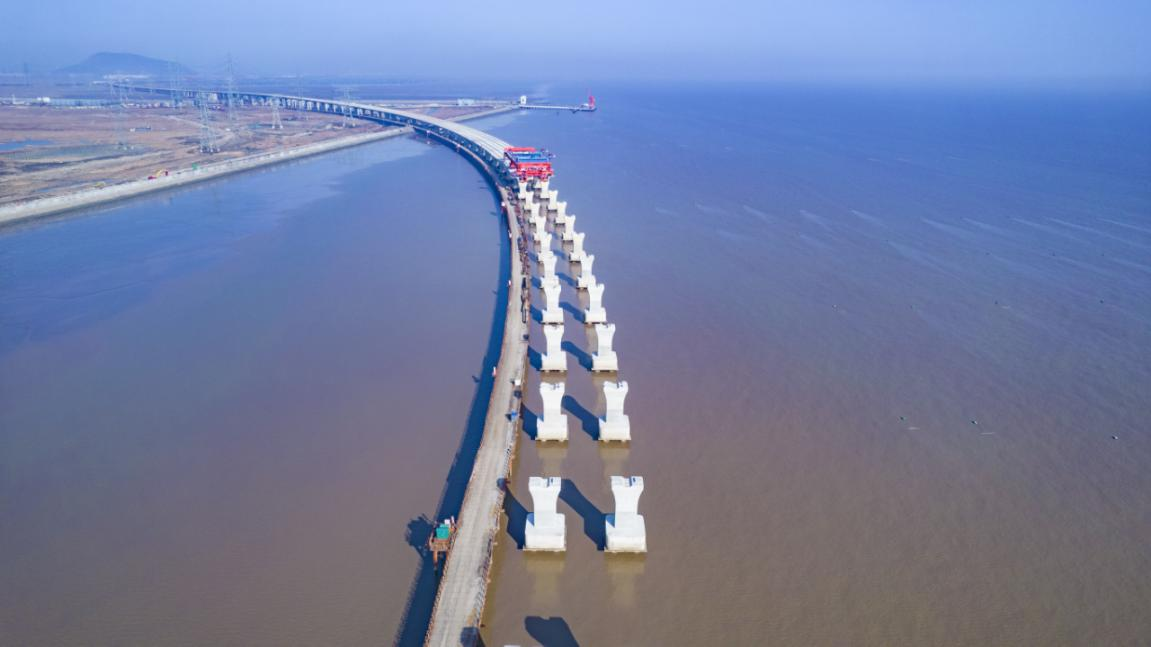 杭甬復線寧波一期項目濱海高架特大橋施工現(xiàn)場。浙交建設公司供圖