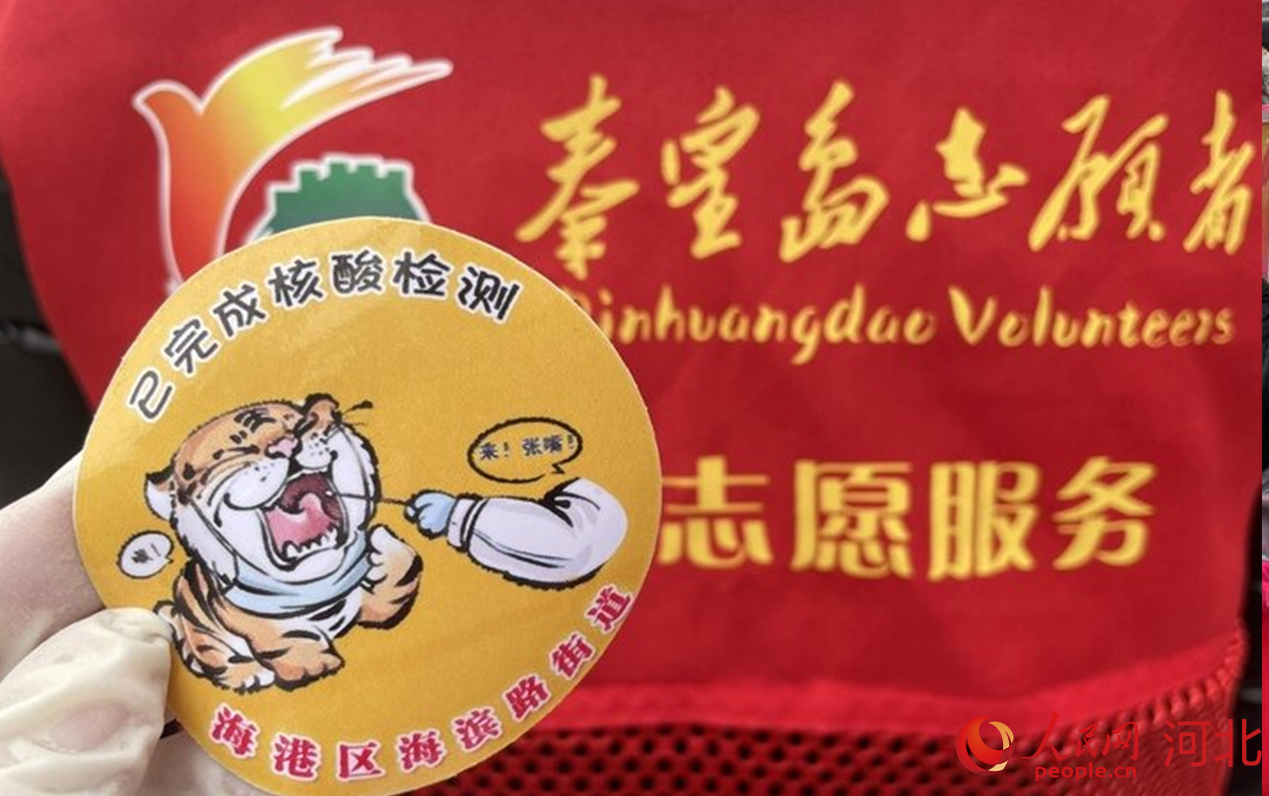 為了提高孩子們參與配合意識,海濱路街道特意制作了“兒童專屬獎勵貼紙”,發(fā)給完成檢測的孩子。貼紙上卡通小老虎檢測核酸的樣子很可愛,孩子們領(lǐng)到貼紙,都一臉自豪地跟志愿者互相豎大拇指。