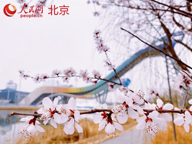 “太酷了!”專程來打卡的小郭一躍而起,與“雪飛天”來了個合影。還有的游客手舉可愛的冰墩墩和雪容融,以大跳臺和冷卻塔為背景拍下了照片。眼下,首鋼園群明湖畔的桃花已滿上枝頭,不少市民游客趕在這個季節(jié)前來一睹“雪飛天”的雄姿。
