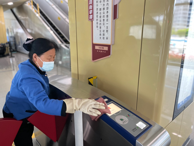 在站臺(tái)、站廳等重點(diǎn)區(qū)域,盡管沒(méi)有了客流,海寧運(yùn)營(yíng)公司根據(jù)車(chē)站實(shí)際需求維持了每日3至4次的消殺頻次。