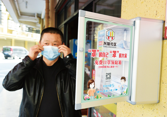 近日,浙江義烏福田街道興隆社區(qū)在轄區(qū)內(nèi)主干道出入口、人員密集的超市、藥店、快遞點等地設置免費口罩領取箱,箱里放滿了口罩,箱體上寫著“文明領取,每人限領一個”?;顒娱_展半個月以來,6個免費口罩領取箱共送出近6000個口罩。興隆社區(qū)黨委書記黃俊鋼表示,除了設立免費口罩領取箱,社區(qū)還大力開展佩戴口罩勸導活動。(錢旭升)