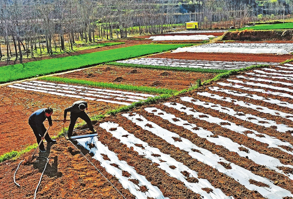 4月2日,垣曲縣南聯(lián)村村民正在田間地膜覆蓋種植早熟糯玉米。該村村民發(fā)揮區(qū)域銷售優(yōu)勢,搶時保墑地膜覆蓋種植白糯、黑糯、香禾糯3個優(yōu)質糯玉米品種100畝。這類糯玉米產(chǎn)量高、口感好,4月初播種,6月下旬即可上市,畝收入可達6000多元,比傳統(tǒng)玉米經(jīng)濟效益提高3倍多。(魯國林攝)