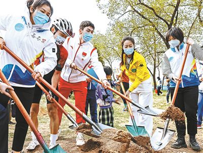 此次活動由國家體育總局冬運中心與北京市石景山區(qū)共同舉辦,是“冰雪向未來”全國群眾性冰雪主題活動的第一站,也是北京冬奧會后冰雪項目國家隊公益服務計劃的首場活動。圖為昨日,北京冬奧會冠軍武大靖(左三)在北京冬奧公園內(nèi)的“中國冰雪冠軍林”植樹。