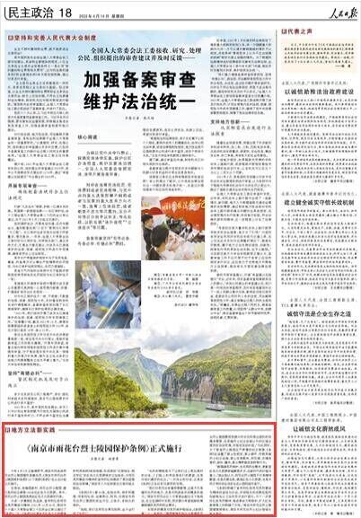 為進(jìn)一步賡續(xù)紅色血脈、宣傳和弘揚(yáng)雨花臺英烈事跡與精神,2021年12月30日,南京市十六屆人大常委會第三十四次會議審議通過了《條例》?!斑@一《條例》與《南京市紅色文化資源保護(hù)利用條例》有效銜接,形成南京‘點(diǎn)面結(jié)合、相互呼應(yīng)’的紅色文化資源保護(hù)立法體系,為雨花英烈事跡與精神的宣傳和弘揚(yáng)提供了更加堅(jiān)強(qiáng)的法治保障?!蹦暇┦腥舜蠓ㄖ莆魅挝瘑T姚正陸說。