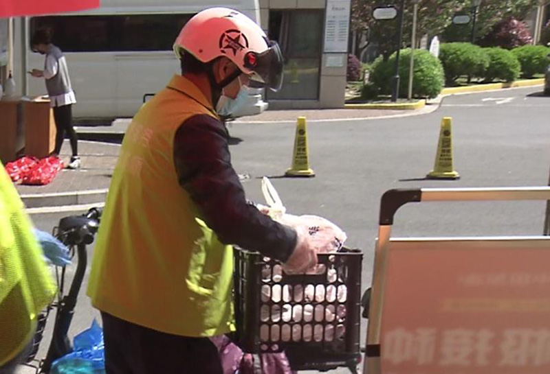 在玉麟名邸小區(qū),前一天晚上居民們通過居委訂購的蔬菜和肉類食品今天上午已經(jīng)抵達(dá)各暫存點(diǎn)位,陸續(xù)有居民接到通知前來取貨。除了蔬菜肉類食品,在昨天城橋鎮(zhèn)公布的生活物資保供指南中,還增設(shè)了米、油、調(diào)味料、衛(wèi)生用品等套餐,由各村居根據(jù)各自實(shí)際情況組織集中代購和分發(fā)?!靶^(qū)居民錯峰分時領(lǐng)取,開放式的老街小巷,我們安排每戶送上門?!倍帕柙平榻B。