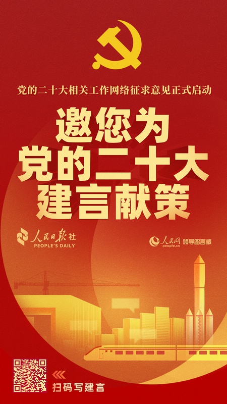 黨的十九屆六中全會決定,黨的二十大于2022年下半年在北京召開。開展黨的二十大相關(guān)工作網(wǎng)絡(luò)征求意見,充分彰顯了以習(xí)近平同志為核心的黨中央發(fā)揚民主、集思廣益的優(yōu)良作風(fēng),是我們黨堅持以人民為中心、尊重人民主體地位、走好群眾路線的重要體現(xiàn),是發(fā)揮中國特色社會主義制度優(yōu)勢、推進全過程人民民主的生動實踐,是適應(yīng)互聯(lián)網(wǎng)時代新要求、推進國家治理體系和治理能力現(xiàn)代化的有益探索。