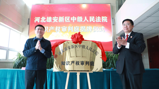 同日上午,河北雄安新區(qū)中級人民法院知識產(chǎn)權(quán)審判庭揭牌儀式在雄安中院進(jìn)行,開啟雄安新區(qū)知識產(chǎn)權(quán)司法保護(hù)新征程。