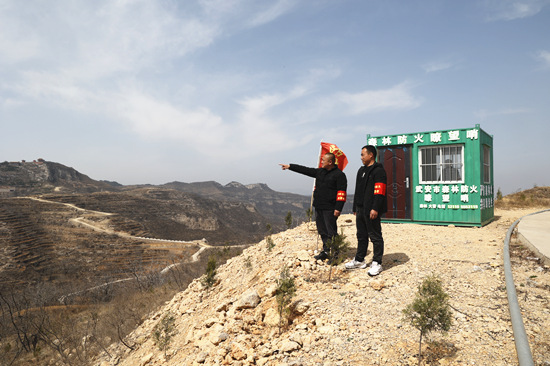 3月23日,武安市防火巡視人員正在查看防護(hù)區(qū)。李樹(shù)鋒攝