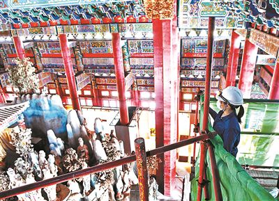 目前,北海公園小西天景區(qū)已暫停開放,進(jìn)行結(jié)構(gòu)安全鑒定。北京青年報(bào)記者了解到,這是北海公園首次針對古建筑的結(jié)構(gòu)安全性進(jìn)行全面“體檢”,為今后制定修繕方案奠定基礎(chǔ)。據(jù)悉,在不影響正常游覽的情況下,小西天建筑群將于“五一”假期恢復(fù)對公眾開放。 攝影/本報(bào)記者 郝羿