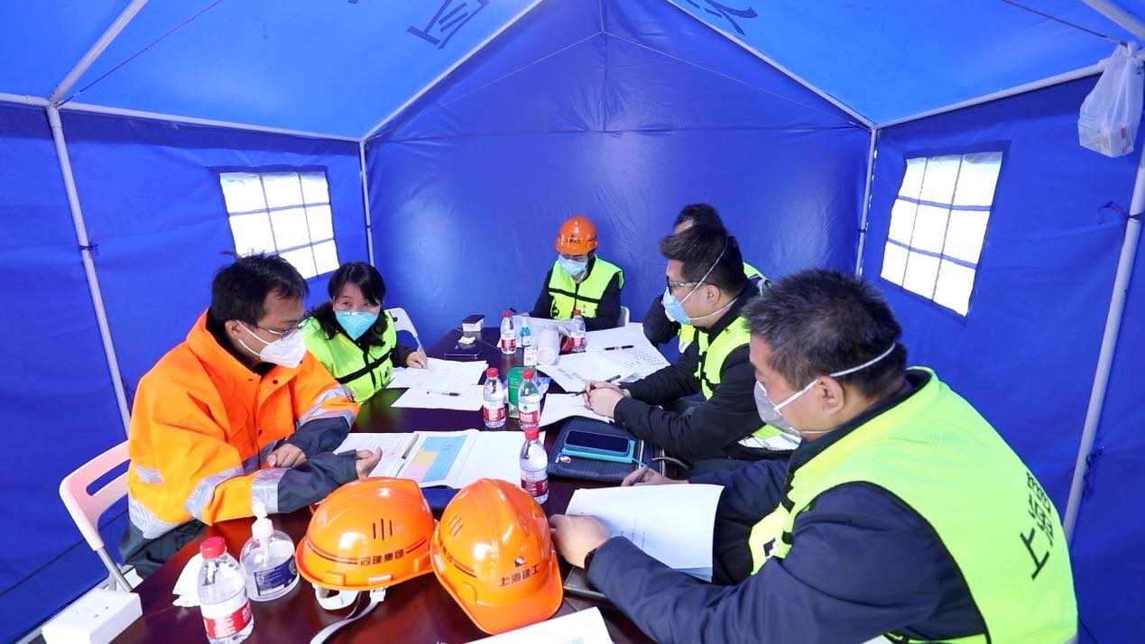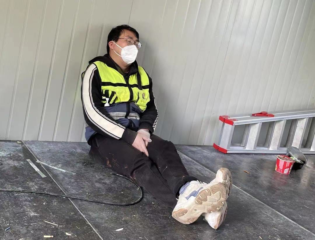 “3月底的上海,還有點(diǎn)冷,沒有被子蓋,我們就裹著衣服,每天只能睡不超過兩小時?!鄙虾=üぜ瘓F(tuán)副總工程師王美華是施工現(xiàn)場為數(shù)不多的女性?,F(xiàn)場24小時不停工,工人兩班倒,交班后就地鋪板睡覺,但應(yīng)急指揮部管理人員要隨時待命,解決現(xiàn)場各類問題,只能找間隙蜷縮在車?yán)镄菹⒁幌隆?/p>