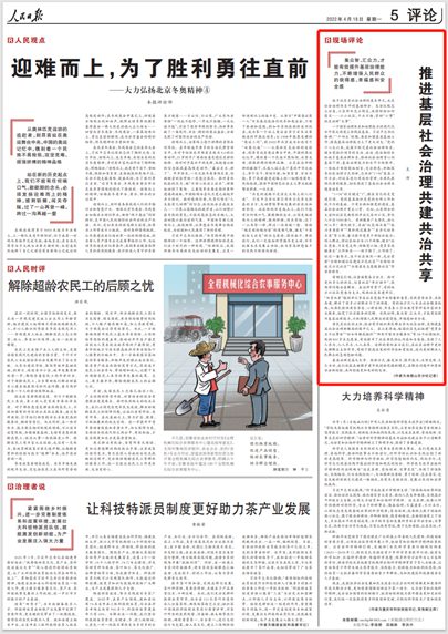 人民日報“現(xiàn)場評論”:推進基層社會治理共建共治共享