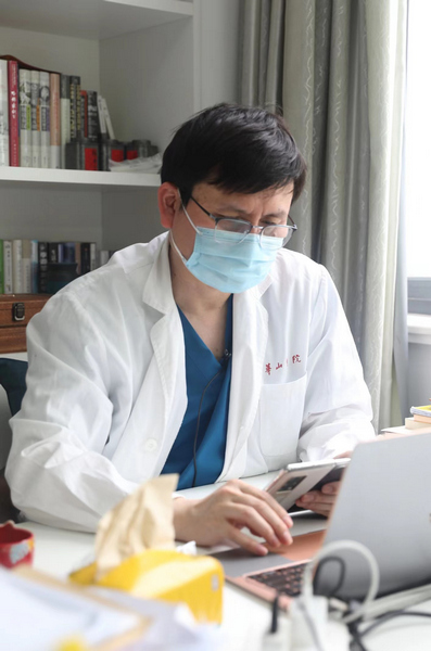 緊接著,張文宏和100余位專家視頻連線,會診各定點(diǎn)醫(yī)院的重癥患者。他在線聽到了好消息,“有一例危重型患者,兩次核酸陰性;還有3例基礎(chǔ)病重癥患者由原先的基礎(chǔ)病重癥轉(zhuǎn)為輕癥”……連線結(jié)束,他快速接受了大江東工作室的專訪,后面,他還有一場專家討論會要參加。