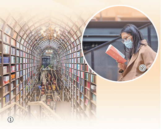 圖②:北京紅樓公共藏書樓內(nèi),讀者在專心讀書。