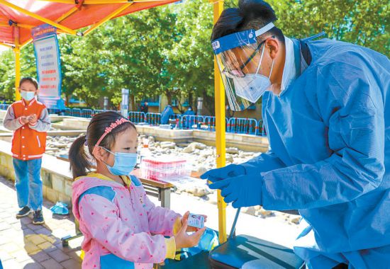 昨天清晨,天剛蒙蒙亮,鄭爍就到達(dá)集結(jié)點(diǎn)位。核酸檢測開始后,鄭爍主要負(fù)責(zé)現(xiàn)場秩序維護(hù)引導(dǎo)、掃碼登記、查驗(yàn)健康寶、協(xié)助老年人做好信息登記等工作?!白蛱毂本┑淖罡邭鉁剡_(dá)到32攝氏度,核酸檢測期間,我們志愿者小組為上千位居民提供了服務(wù),這期間一個(gè)跟著媽媽來做核酸的小女孩每路過一位志愿者都會主動說一聲‘叔叔阿姨,辛苦了!’聽著孩子甜美的問候,再累也值了!”鄭爍告訴記者。