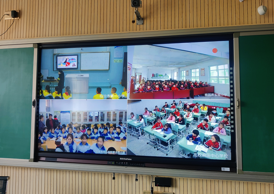 “同學(xué)們,我們今天學(xué)習(xí)《文房四寶》,請(qǐng)看大屏幕......”當(dāng)臨汾市第一小學(xué)三年級(jí)的陳老師話音剛落,同時(shí)在課的左權(quán)麻田中心學(xué)校、呂梁方山縣積翠小學(xué)、忻州市岢嵐縣桃園聲實(shí)驗(yàn)小學(xué)的教室里就響起了一陣陣地驚嘆聲。“新型空間”里,四個(gè)相距百公里的200多名在校師生正沉浸在“晉享云課堂”教學(xué)中。