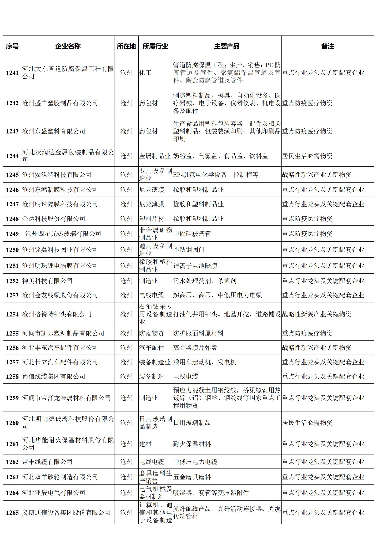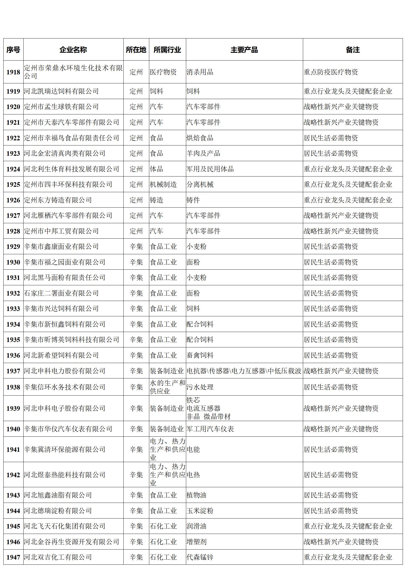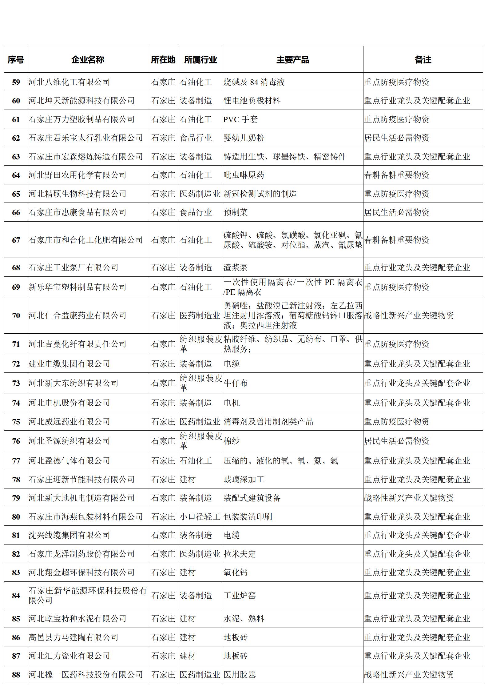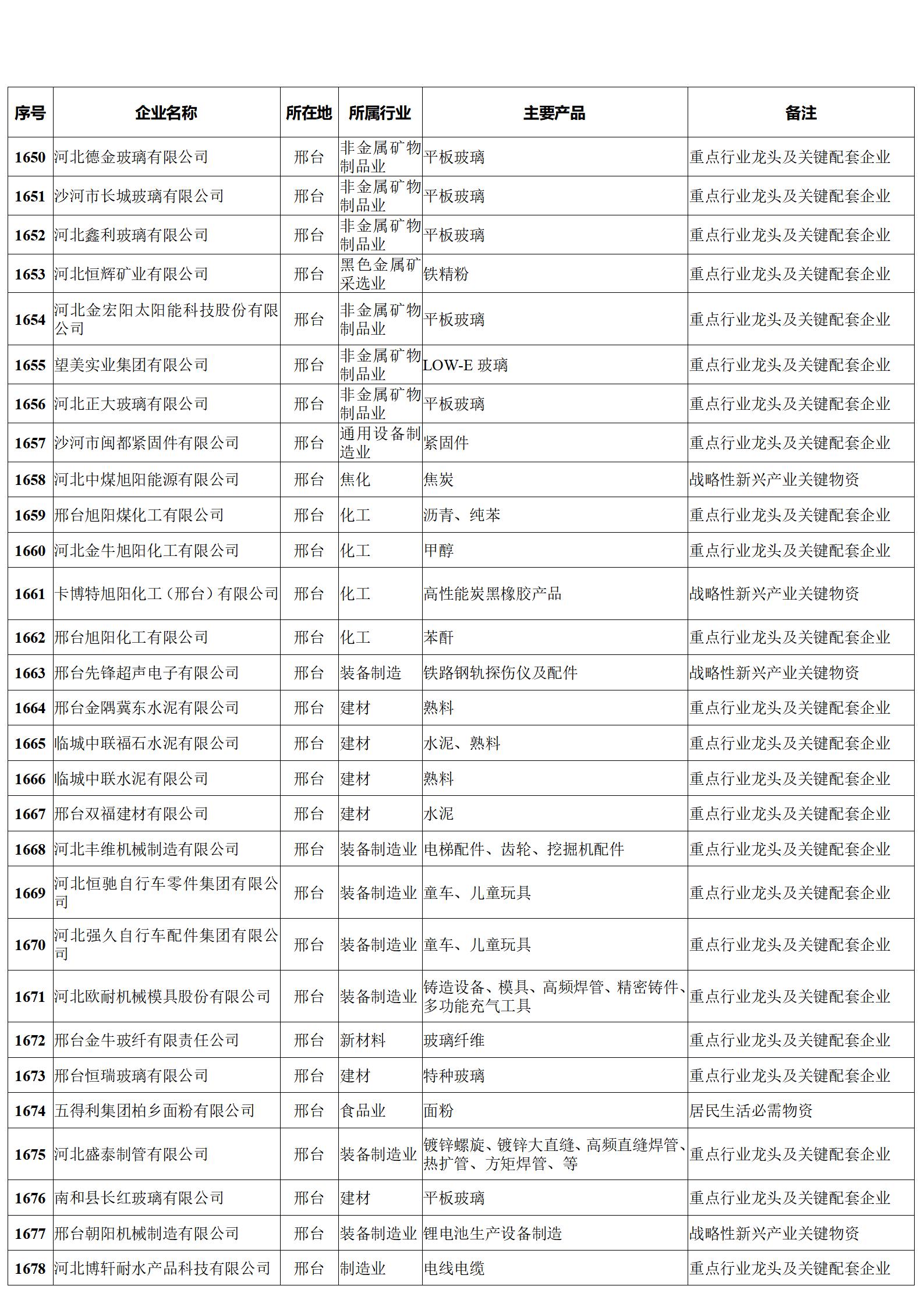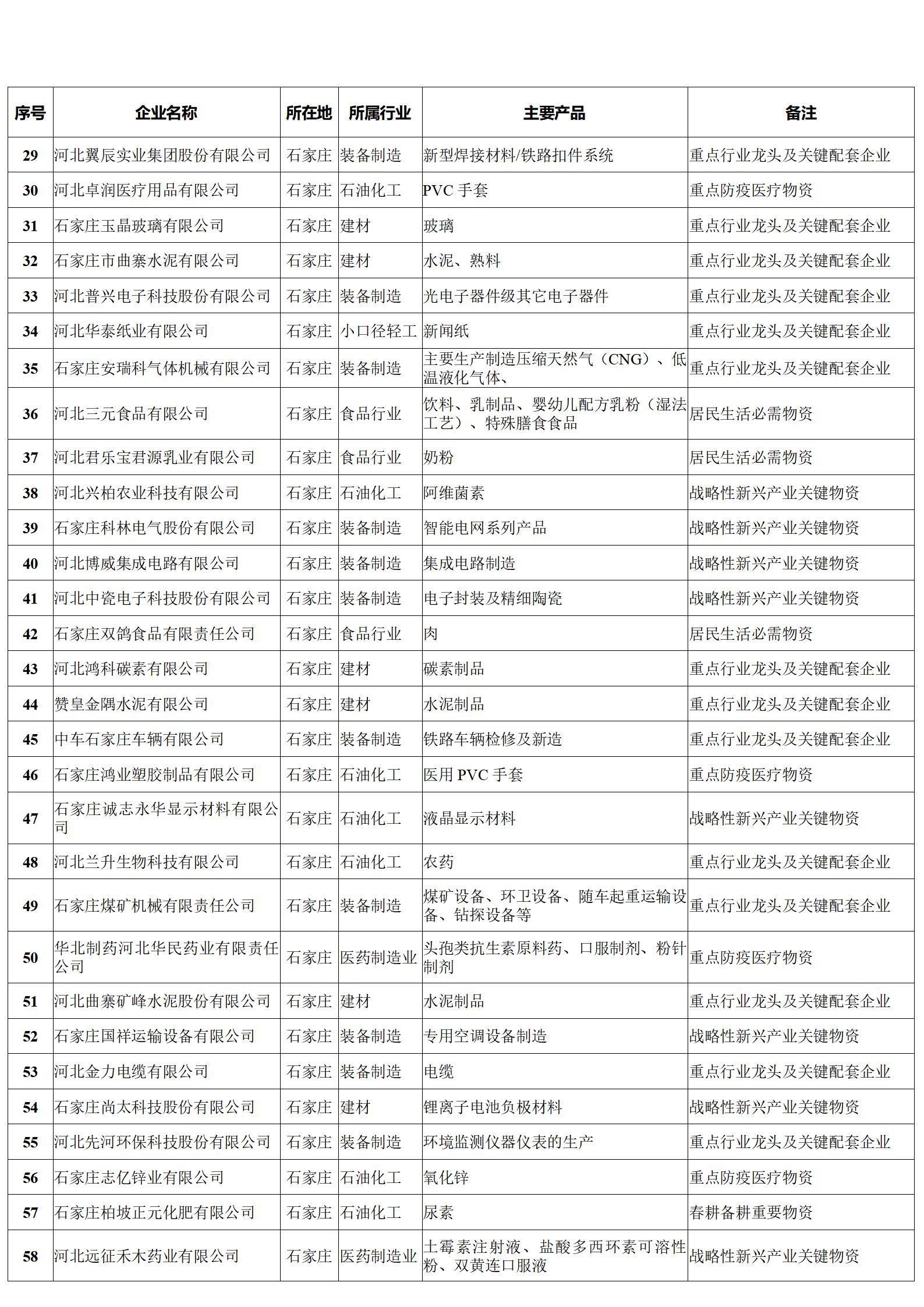 河北省重點(diǎn)產(chǎn)業(yè)鏈供應(yīng)鏈“白名單”企業(yè)