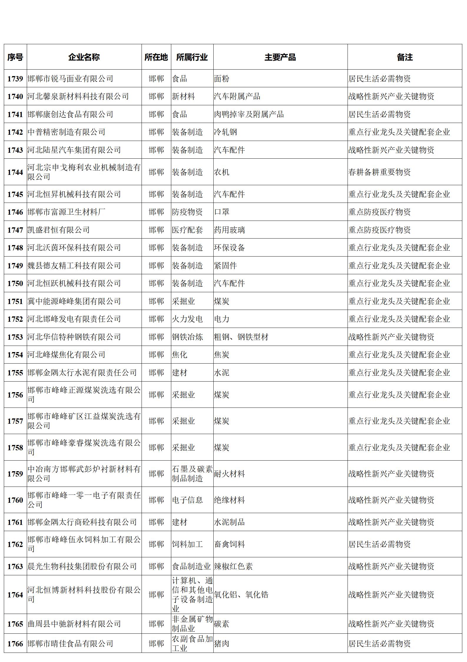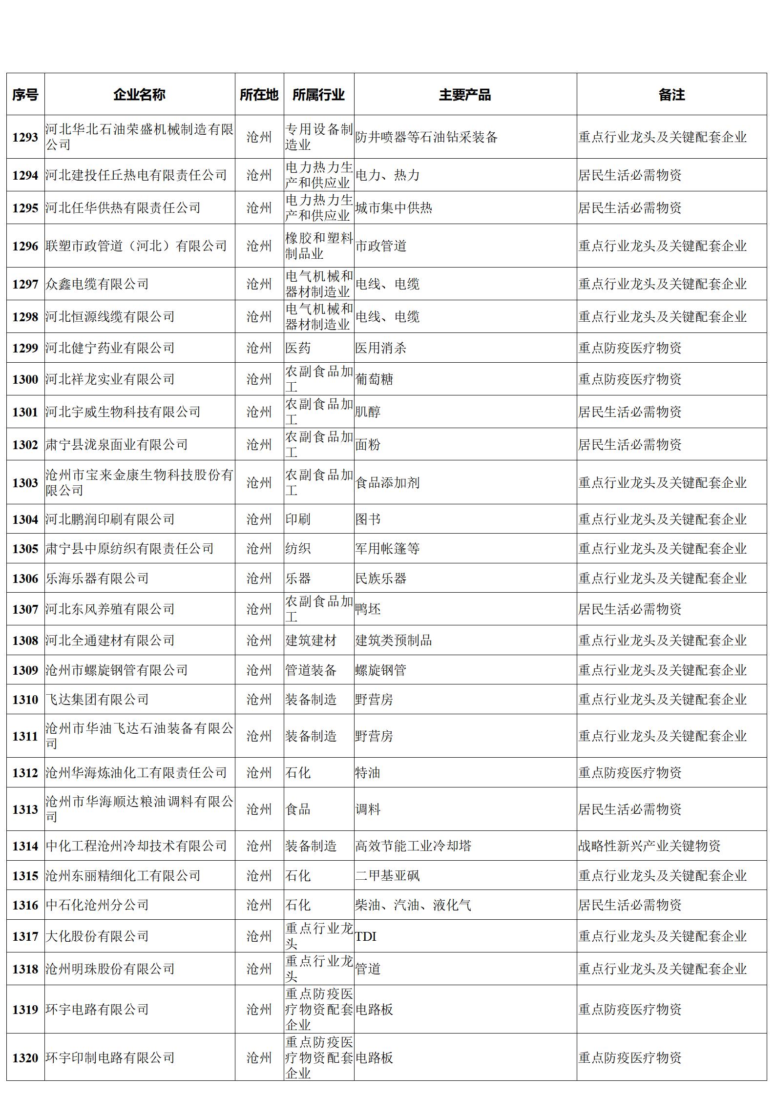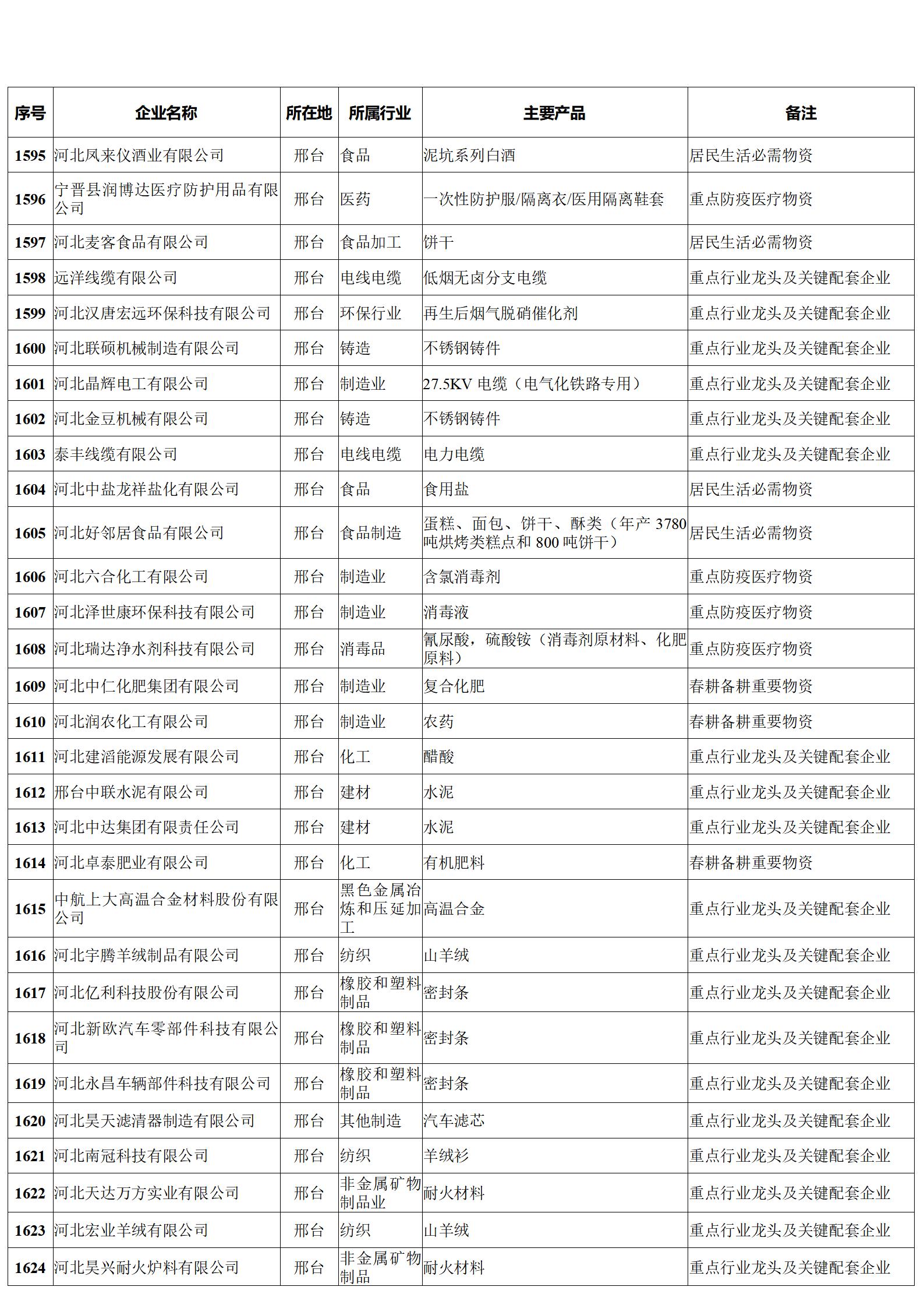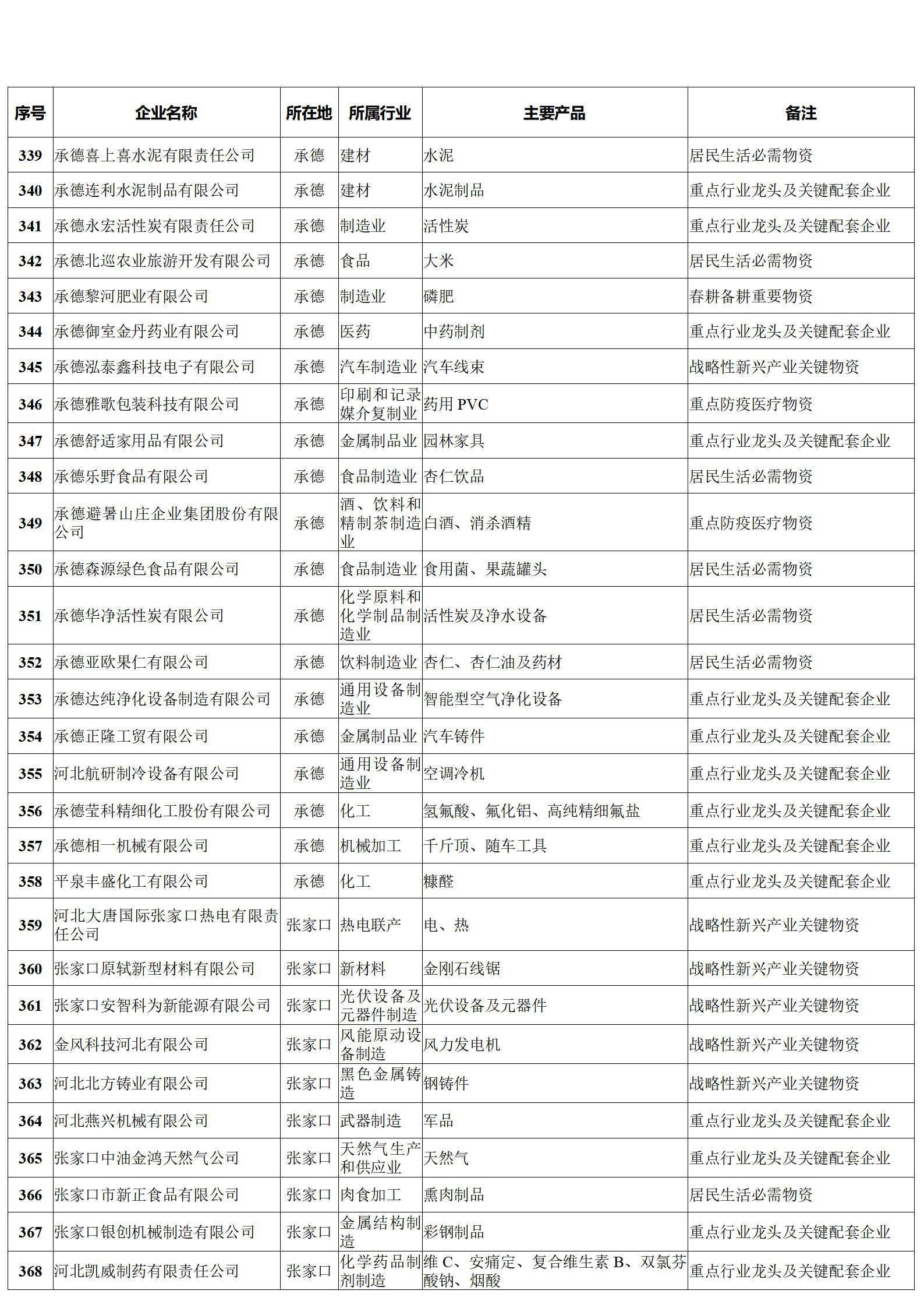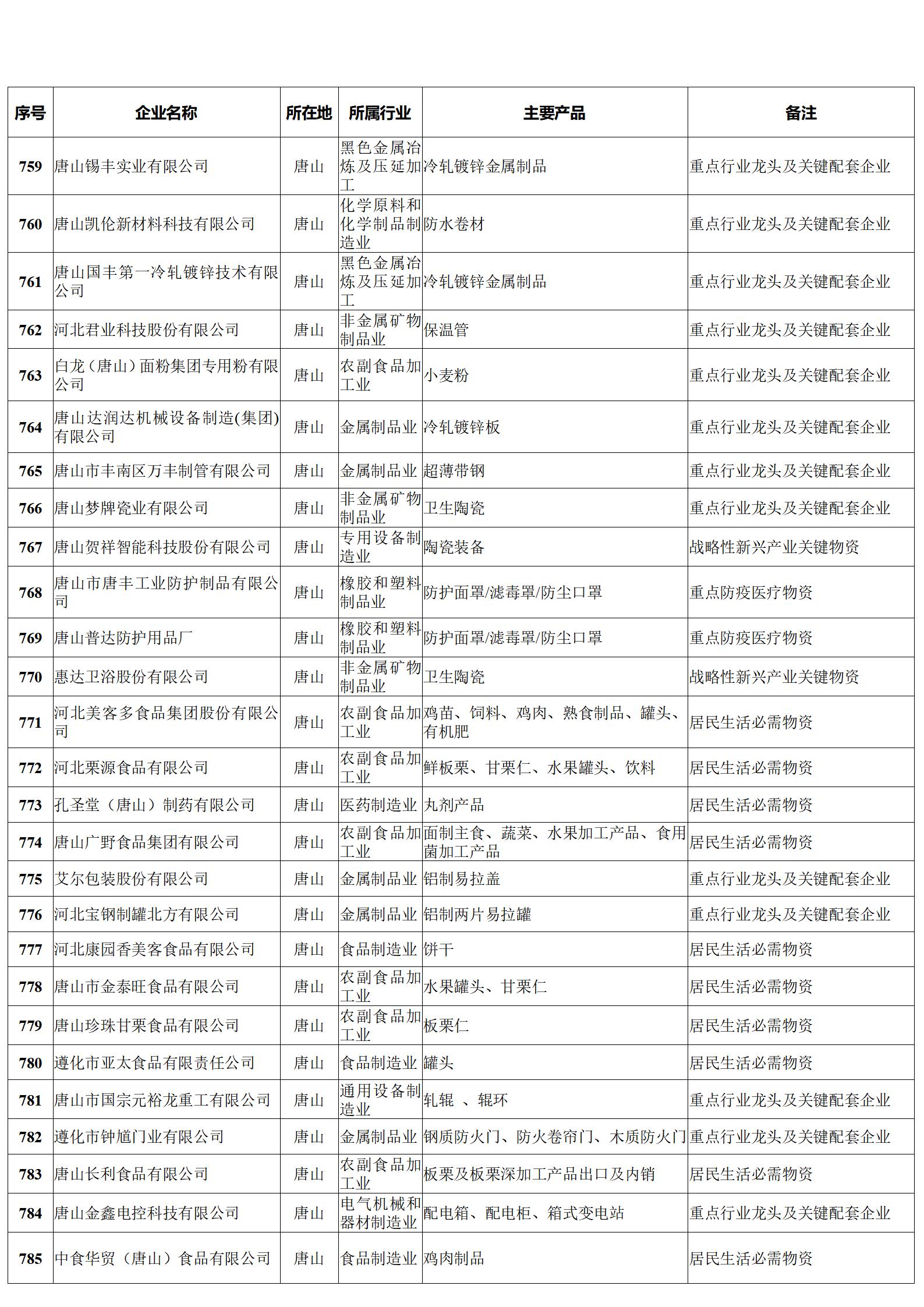 河北省重點(diǎn)產(chǎn)業(yè)鏈供應(yīng)鏈“白名單”企業(yè)