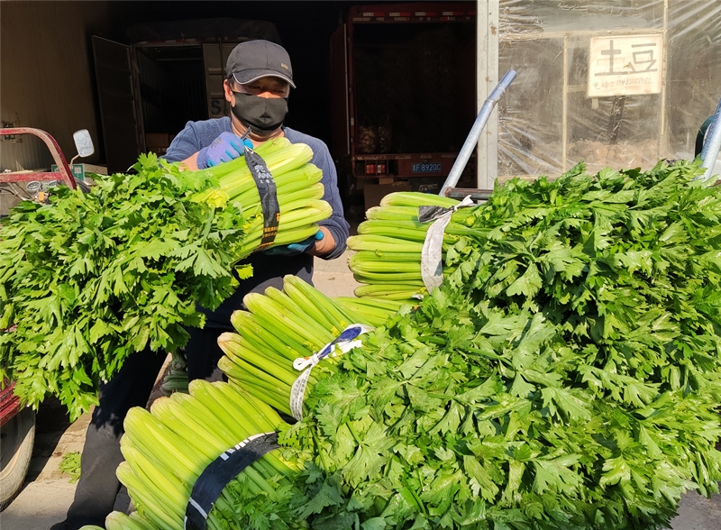“市場(chǎng)每天大約回貨是40多輛車,蔬菜一百七八十噸,水果一百四五十噸。蘋(píng)果、梨、香蕉等常見(jiàn)水果及白菜、西紅柿、黃瓜等日常蔬菜供應(yīng)充足,可以充分滿足市民需求?!笔袌?chǎng)副經(jīng)理王健說(shuō)。