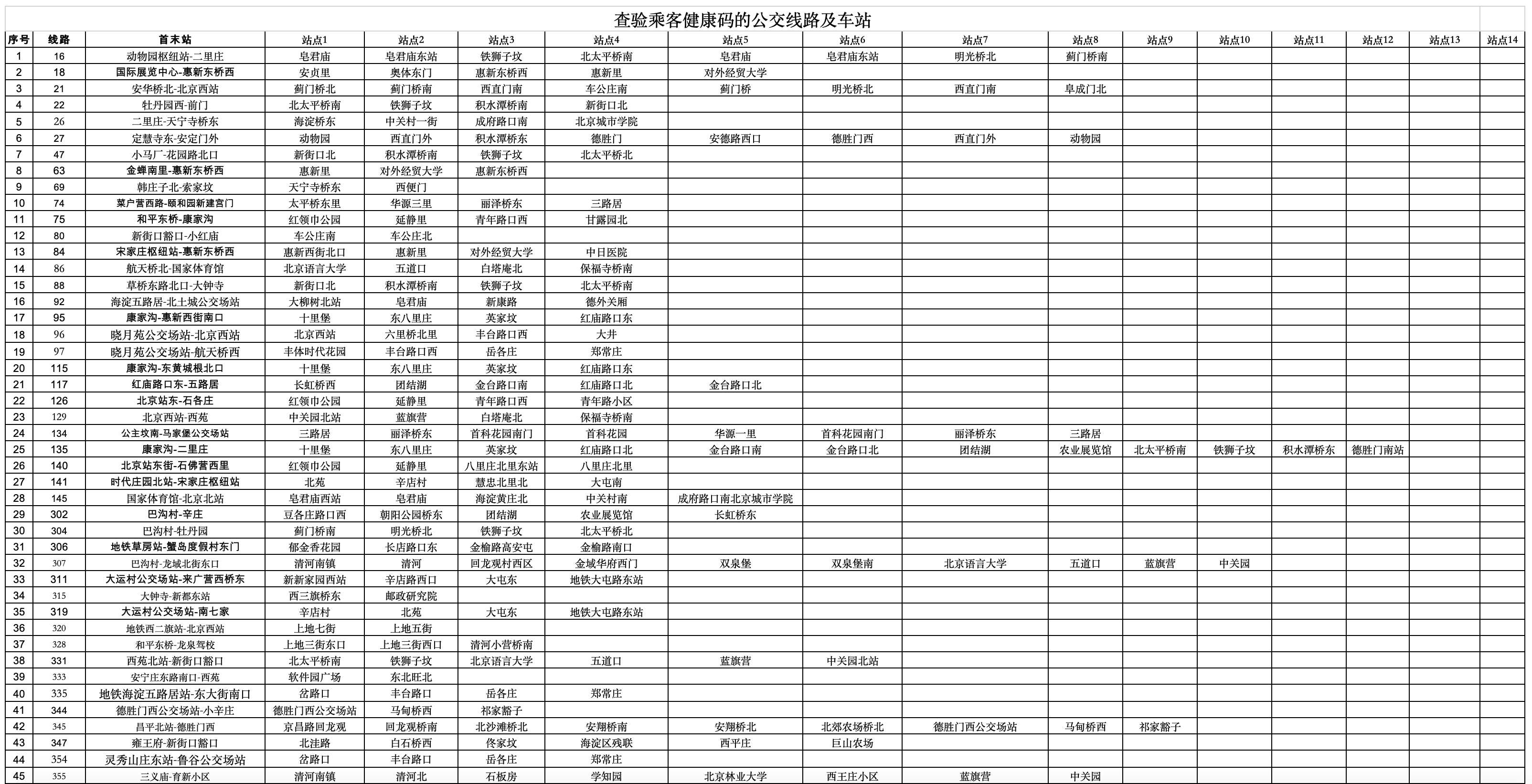 附件2 :查驗(yàn)乘客健康碼的公交線路及車站