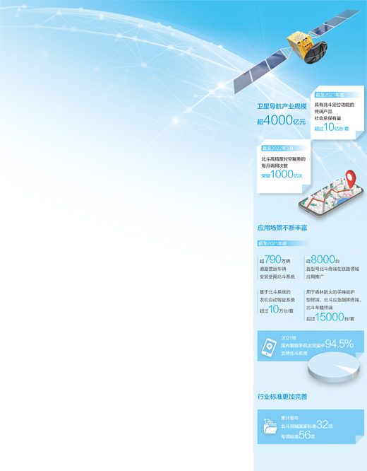 從產業(yè)基礎看,國內以北斗為核心的導航與位置服務技術創(chuàng)新持續(xù)活躍,國產北斗芯片、模塊等關鍵技術取得突破,支持北斗三號新信號的SoC芯片,在物聯(lián)網(wǎng)和消費電子領域得到了廣泛應用。截至2021年底,具有北斗定位功能的終端產品社會總保有量超過10億臺/套。