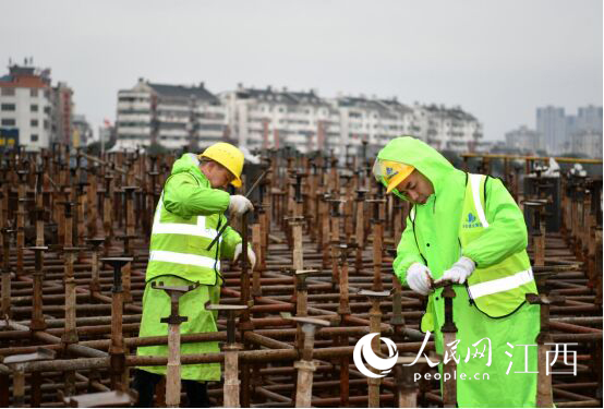 春節(jié)期間,興國(guó)縣重點(diǎn)項(xiàng)目紅軍大橋施工現(xiàn)場(chǎng),工人正在緊張有序作業(yè)。興國(guó)縣委宣傳部供圖
