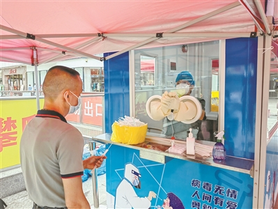 “不用擔(dān)心日曬雨淋、不用穿‘大白’、不用戴N95口罩、不用擔(dān)心被感染、不用連續(xù)工作六個小時……這樣的核酸采樣環(huán)境讓醫(yī)護人員心里暖暖的。”從早上9點到中午12點連續(xù)采樣三個小時,正在進行交接工作的葉醫(yī)生告訴記者。