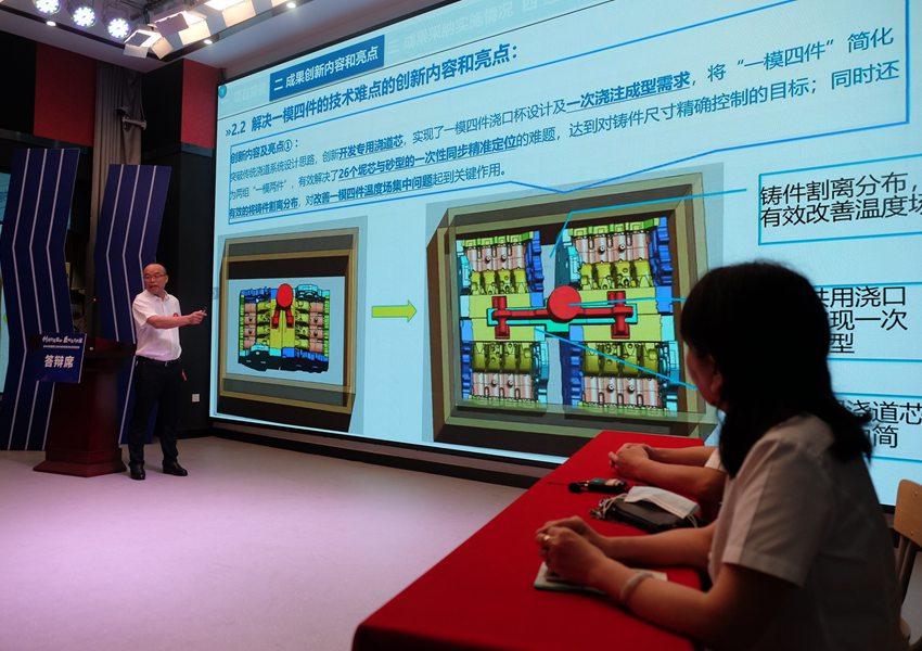 綠色生態(tài)座艙開發(fā)研究技術成果、變壓器套管換油裝置、高效率的一模四件發(fā)動機缸體毛坯關鍵技術研究及成果轉化應用、新能源退役動力電池在SGMW制造系統(tǒng)梯次利用項目、重卷機組關鍵設備減時操作法……參加決賽的項目成果完成人采用PPT講解和現(xiàn)場答辯相結合的形式進行對決。項目答辯人就項目立項背景、成果創(chuàng)新內容和亮點、成果采納實施情況、經(jīng)濟效益、社會效益、獲獎情況等進行了介紹,并圍繞創(chuàng)新成果的創(chuàng)新性、原創(chuàng)性、成果應用成熟性、質量可靠性、成果的先進程度、成果技術水平和難易程度、成果提高勞動生產(chǎn)效率作用、經(jīng)濟效益、社會效益、成果的適用范圍和推廣前景等方面回答評委的提問。