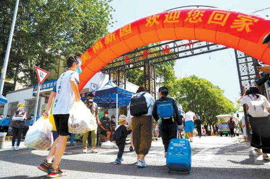 28日,朝陽區(qū)南新園小區(qū)近5000名居民結(jié)束集中隔離后開始陸續(xù)分批回家。 本報記者 程功攝
