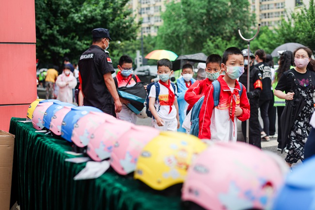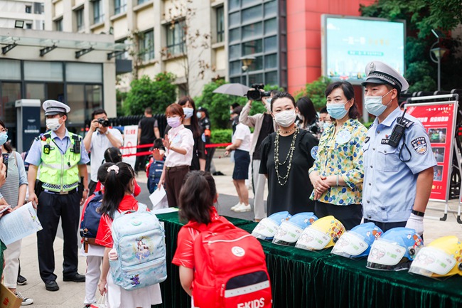 “出門(mén)著急了”“忘戴了”“天熱了,戴著麻煩”“不好意思,下次一定戴好頭盔”……5月25日清晨,西安高新交警聯(lián)合高新一小共同行動(dòng),開(kāi)展“一盔一帶”安全守護(hù)行動(dòng),在校門(mén)口教育、提醒騎行送孩子上學(xué)而未給孩子佩戴頭盔的家長(zhǎng)重視交通出行安全。活動(dòng)現(xiàn)場(chǎng),學(xué)校家委會(huì)還組織為沒(méi)有戴頭盔的孩子贈(zèng)送了頭盔。當(dāng)天,高新區(qū)30余所學(xué)校安全負(fù)責(zé)人全程觀摩了此次活動(dòng)。
