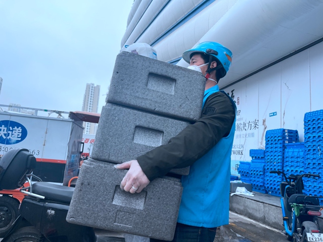 線上訂單量持續(xù)升高,很多盒馬門店配送小哥滿負(fù)荷上路。