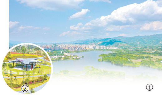 圖①:重慶市梁平區(qū)雙桂湖國家濕地公園的美景。