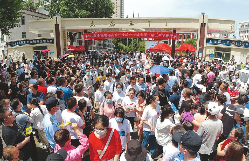 6月7日,太原五中考點(diǎn),結(jié)束語(yǔ)文考試的考生們走出考場(chǎng)。記者李兆民攝