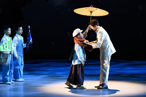 2022年5月30日晚,由中國兒童藝術(shù)劇院與江蘇省淮安市共同打造的兒童劇《新安旅行團(tuán)》在淮安首演。這部劇探尋了當(dāng)年“新安旅行團(tuán)”以文藝方式宣傳抗日、喚醒民眾的紅色歷程。新華社記者 季春鵬 攝