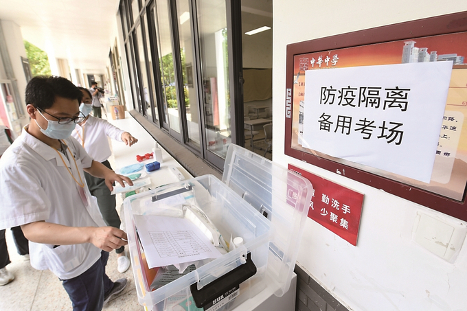 南京市中華中學(xué)考點(diǎn)備齊防疫物資,保障平安高考。 本報(bào)記者 萬程鵬 攝