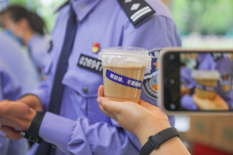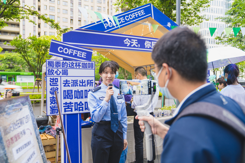 同時(shí),隨著“坐在警務(wù)站里喝咖啡”話題持續(xù)火爆,公安民警將踐行“三能”要求與參與創(chuàng)意市集相結(jié)合,創(chuàng)新推出了“蜀黍請你喝咖啡 反詐知識帶回家”快閃活動,以更有活力、更接地氣、更潮流入時(shí)的方式,讓年輕群眾在學(xué)習(xí)知識的過程中,還能品嘗到香醇可口的咖啡。