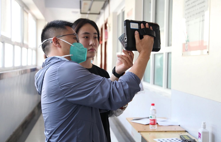 晉城市實(shí)驗(yàn)中學(xué),考場門口進(jìn)行身份證和人臉比對(duì)檢測。陳意茹攝