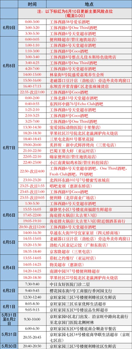 6月10日更新 北京朝陽區(qū)主要風(fēng)險點位公布