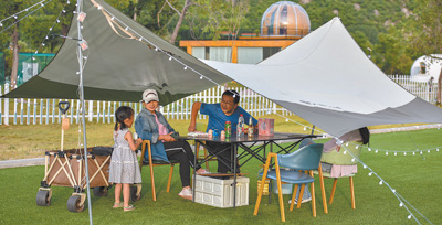 “三五好友結(jié)伴而行,喝茶賞景,好不愜意?!背虝哉f,“現(xiàn)在市場(chǎng)上有很多比較成熟的露營(yíng)產(chǎn)品可選擇,有的只提供帳篷等設(shè)備,需要自備餐食,有的是全包,吃住游所需都準(zhǔn)備好了,還有些個(gè)性化的產(chǎn)品會(huì)提供桌游、羽毛球等休閑項(xiàng)目。”在體驗(yàn)過幾次露營(yíng)后,程曉正打算帶上父母一起戶外郊游。