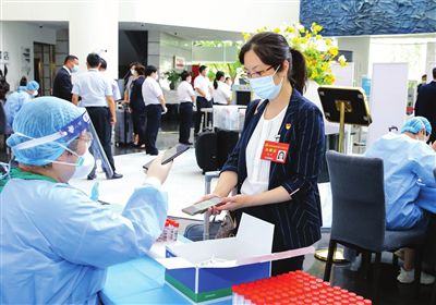 因新冠疫情防控需要,此次黨代會(huì)實(shí)行全程閉環(huán)管理。“請(qǐng)您先測(cè)一下體溫。”工作人員熱情地引導(dǎo)著。代表們佩戴口罩,保持間距,有序完成測(cè)溫、驗(yàn)碼、安檢、流調(diào)、核酸檢測(cè),隨后全身心投入到參會(huì)各項(xiàng)準(zhǔn)備工作。