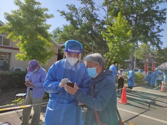 “五一”假期第一天,在通州臨河里街道華遠(yuǎn)銘悅南區(qū)核酸檢測(cè)點(diǎn),北京金控集團(tuán)下沉干部王超拍照、核對(duì)、詢問,迅速完成登記工作。老人聽力不佳,他便提高音量、耐心解釋;居民排隊(duì)距離過密,他向社區(qū)建議調(diào)整排隊(duì)通道,保證安全。相同的輸入動(dòng)作、相似的問答話語王超每天要重復(fù)近千次。