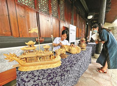 寧波主會(huì)場(chǎng)“運(yùn)河市集”展示龍舟雕刻技藝。唐嚴(yán)攝