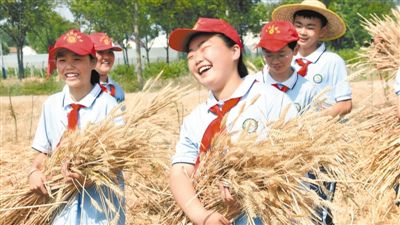 安徽省淮北市濉溪縣蒙村小學(xué)組織學(xué)生走進(jìn)麥?zhǔn)宅F(xiàn)場(chǎng),讓學(xué)生在田間課堂真切地感受勞動(dòng)的辛苦和糧食的寶貴。